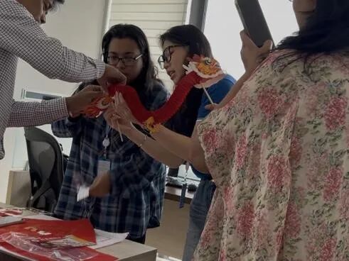 活动伊始,她向同事们系统介绍了中国新年的历史渊源与文化内涵。从春节在中华文化中的重要地位,到辞旧迎新、家国团圆所承载的情感价值,再到春联、舞龙、书法等传统习俗背后的寓意与象征,同事们在轻松而真诚的交流中,感受到春节不仅是一段节日时光,更是一种跨越千年的文化记忆。