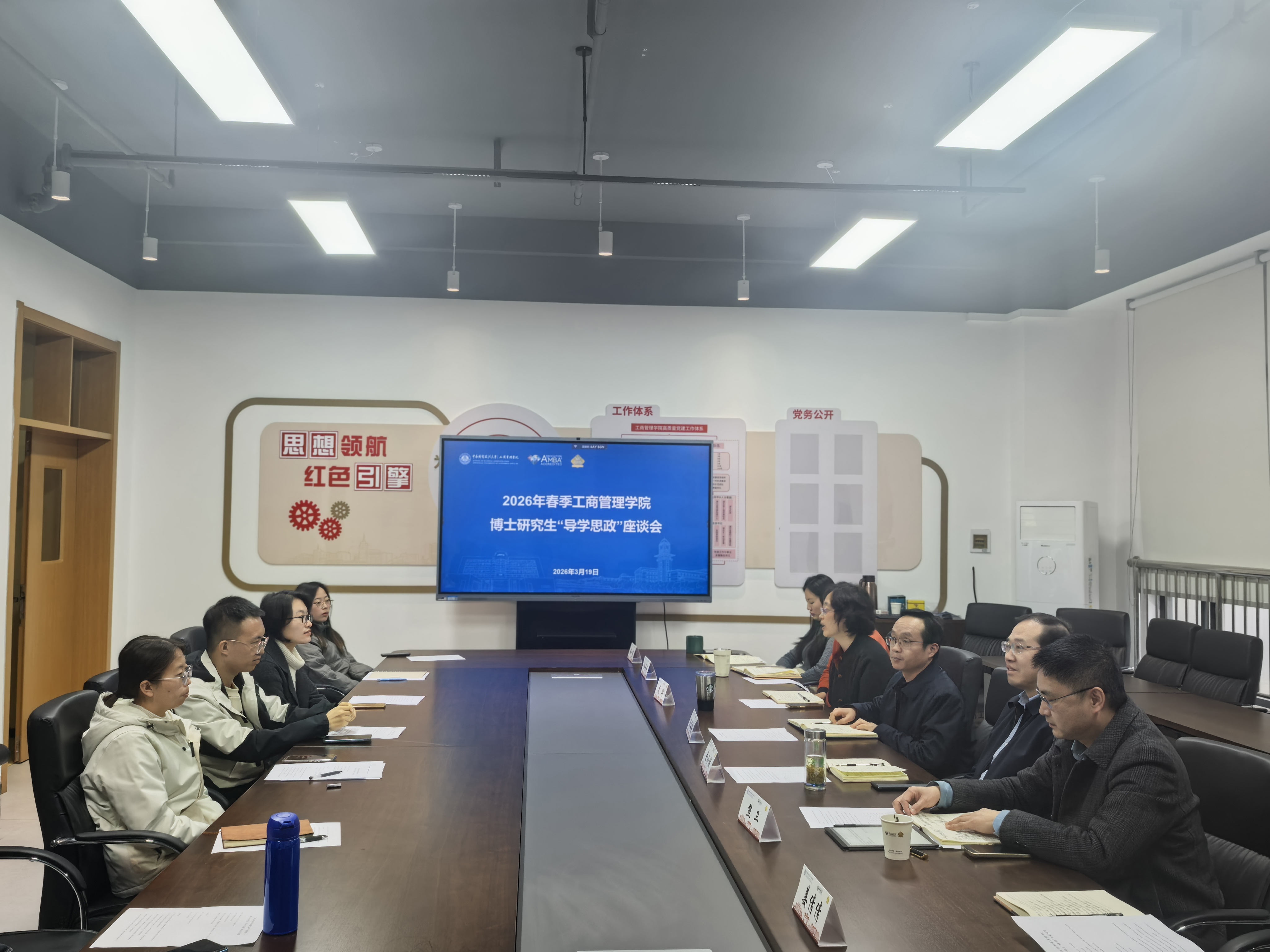 (通讯员 童忆如)为进一步深化学院综合改革,突出问题导向,全面提升研究生培养质量,营造和谐健康的导学关系,3月19日下午,工商管理学院在文瀚楼北703会议室召开2026年春季学期博士研究生“导学思政”专题座谈会。院长、MBA教育中心主任吴海涛、院党委书记余小朋、副院长熊卫、研究生工作办公室全体工作人员及各年级博士研究生代表参会,会议由院党委副书记葛明主持。