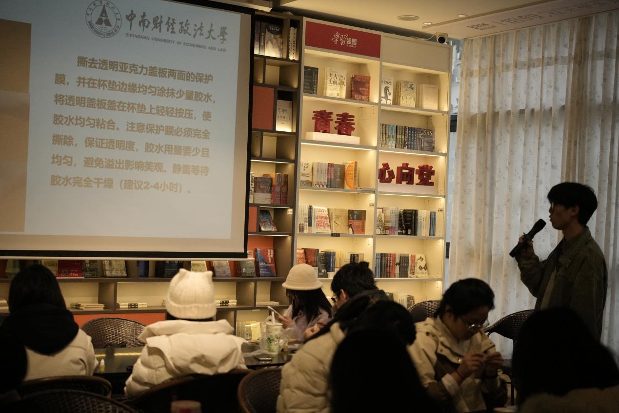 活动伊始,生活实践中心工作人员向在场学子致以诚挚的节日祝福,娓娓道来本次活动的初衷与美好寓意,让大家在温馨的氛围中感受节日的暖意。随后,工作人员围绕干花杯垫DIY展开细致讲解与现场示范。现场还以“花游海鲸”杯垫为例,分步演示制作流程,为大家的手作创作筑牢基础,也让同学们快速掌握创作要领。