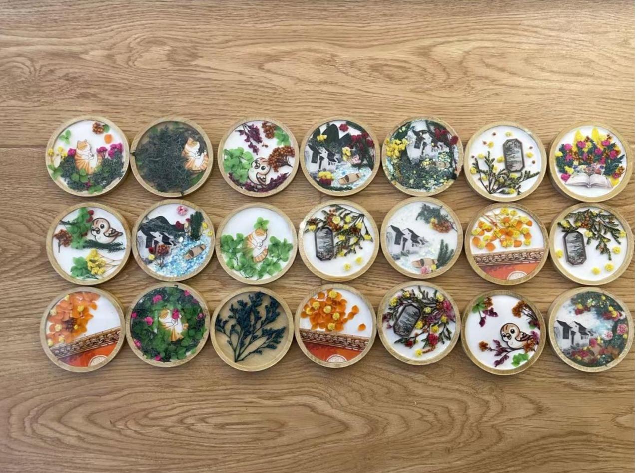 创作过程中,同学们相互交流设计思路、分享制作技巧。当一件件凝聚着巧思与心意的干花杯垫完美呈现,大家的脸上都洋溢着满满的成就感,纷纷手持自己的作品拍照留念,分享创作灵感与节日喜悦,让这份春日限定的美好成为三八妇女节里珍贵的记忆。
