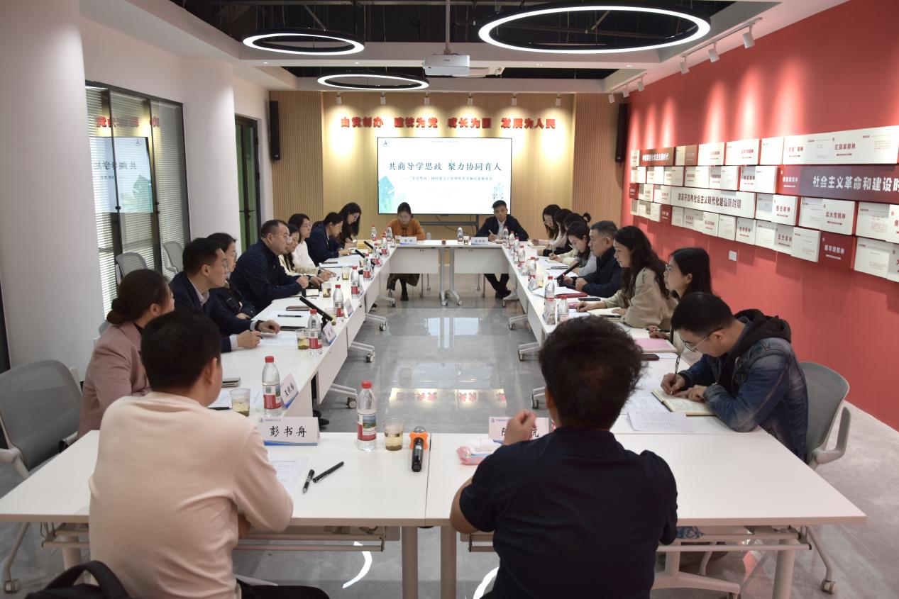 会上,来自相关学院的研究生导师代表围绕导学思政实践路径、导辅协同育人机制建设等方面畅所欲言。导师们从建立常态化导学交流机制、促进导辅协同信息共享等方面提出有针对性的意见建议,就完善学术学位与专业学位分类培养机制、增强学生心理韧性等问题进行交流探讨,还分享了师门传帮带、学位论文撰写进程前置、思政元素融入科研训练等可供借鉴的育人经验。