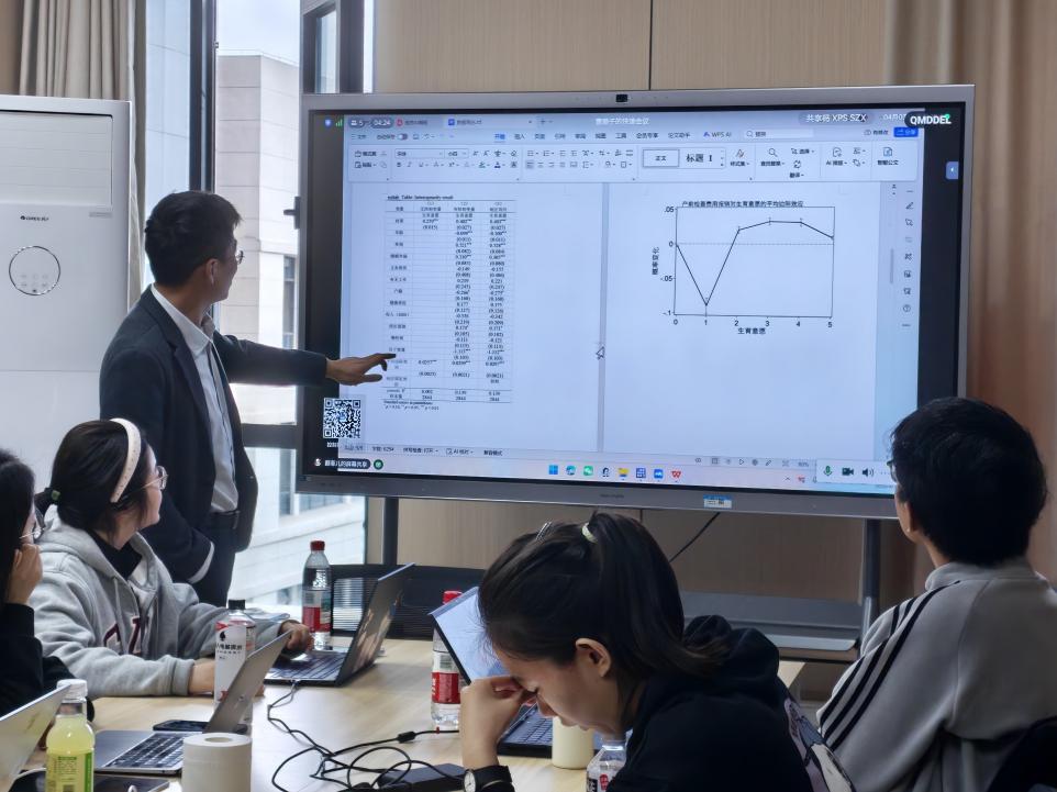 研讨话题聚焦“出生顺序”相关研究,关于“儿童成绩溢出效应”的分享引发热烈讨论。与会师生围绕传统家庭资源分配倾向、性别平等实现等核心问题展开深度研讨,结合“后出生子女成绩更优”的实证结论,深入探讨其政策启示。大家一致认为同胞间良性互动关系的构建,对推动生育鼓励政策落地、助力社会人力资本积累具有重要现实意义。杨华磊教授全程参与研讨,从家庭资源配置效率、父母投入差异等维度,严谨剖析“生育顺序与学业表现”的内在关联,为学生搭建了专业的分析框架与研究视角。
